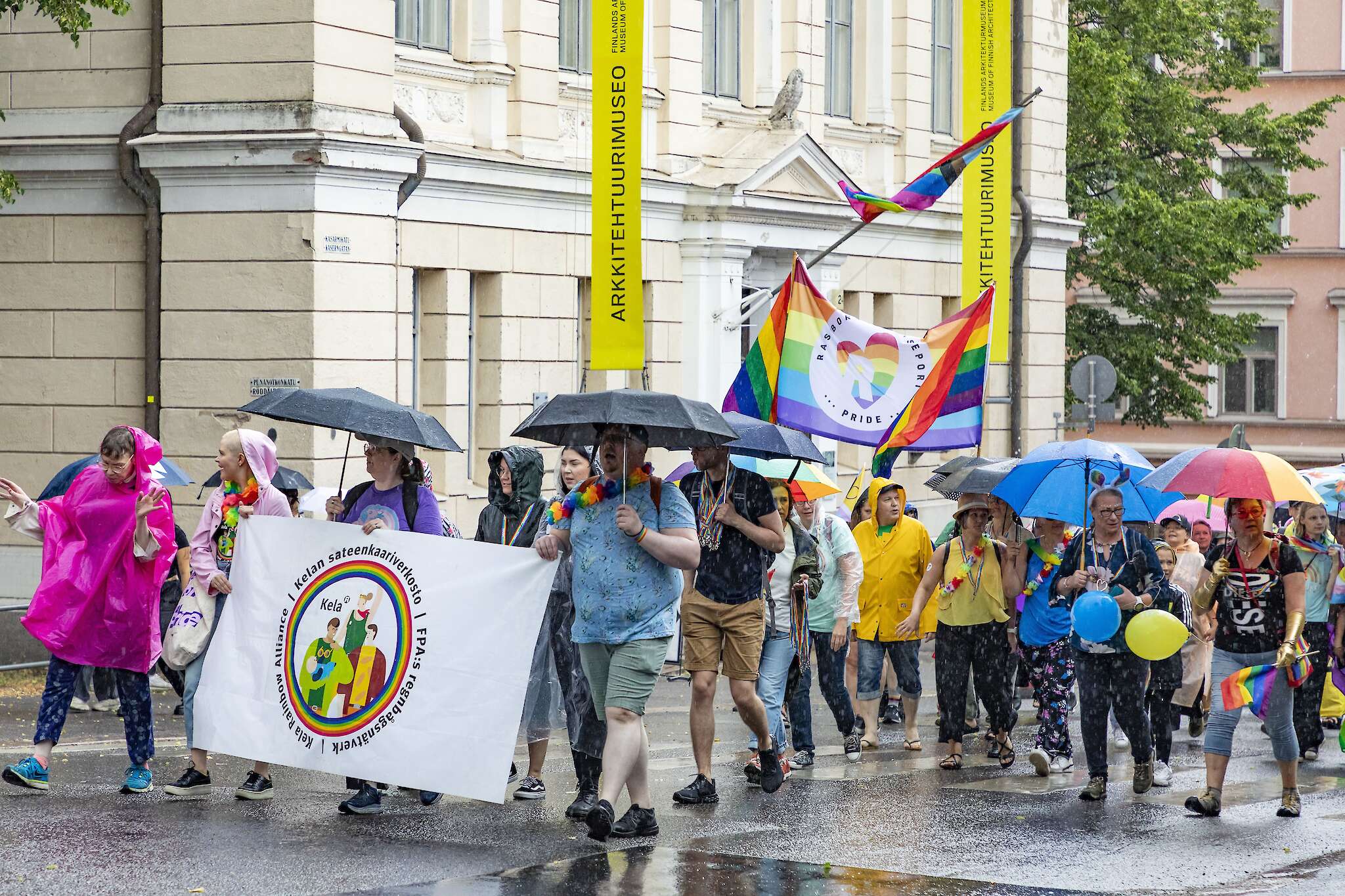 Viime vuonna, kun Lääkäriliitto osallistui ensi kertaa liittona Helsingin Pride-kulkueeseen, marssittiin paahtavassa helteessä. Tämänvuotisessa Pridessa, lauantaina 1. heinäkuuta, rankkasade alkoi suurin piirtein samalla hetkellä, kun arviolta jopa 100 000 ihmisen joukko lähti puoliltapäivin pikkuhiljaa etenemään Senaatintorilta kohti Kaivopuistoa.