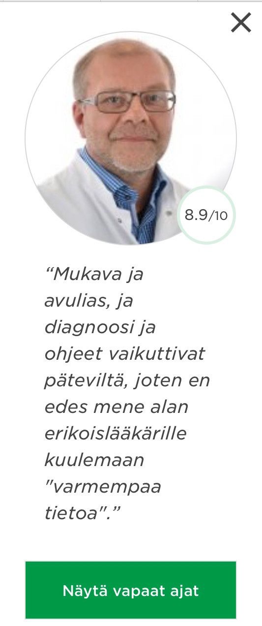 – Meidän pisteytyksemme on keskiarvo potilaiden palautteesta. Lääkäri saa itse päättää, julkaistaanko hänen pisteytyksensä.