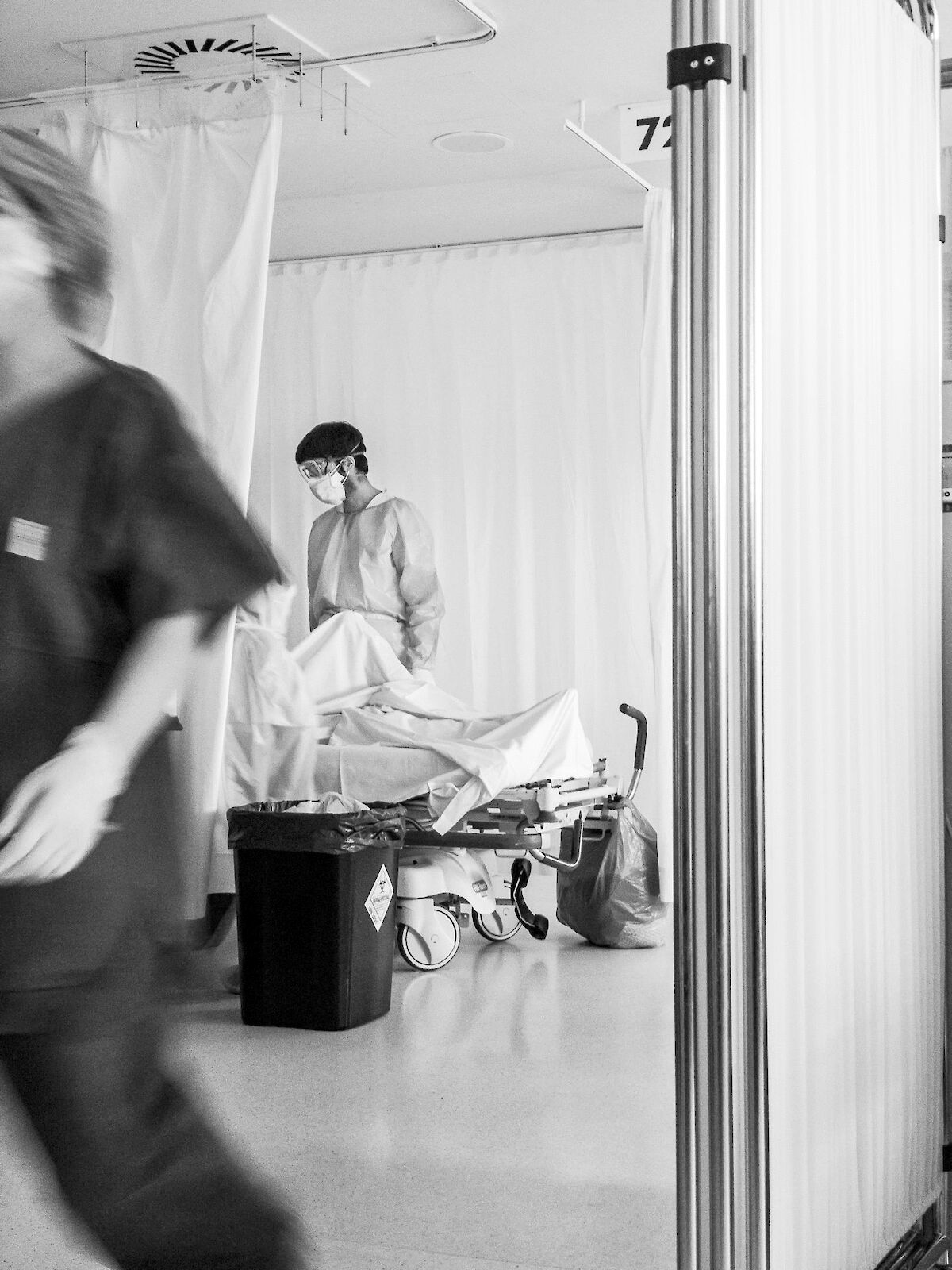 – Huono puoli on se, että vaikka potilaalle laitetaan kuulosuojaimet, viritys on aika meluisa. Siellä humisee ja ventilaattorin tuottama ääni kaikuu moninkertaisena. Kokemukseni mukaan se oli varsinainen deliriumgeneraattori. Myös kommunikointi potilaan kanssa on hankalaa.