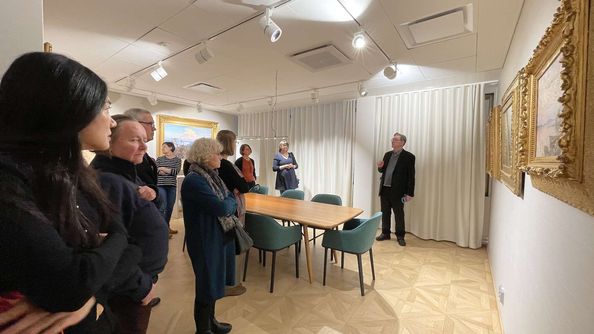 Kävijät kyselivät innokkaasti taiteesta, ja kierrosaika ei meinannut riittää Lääkäriliiton koulutuskoordinaattorin Terhi Hulkon mukaan.