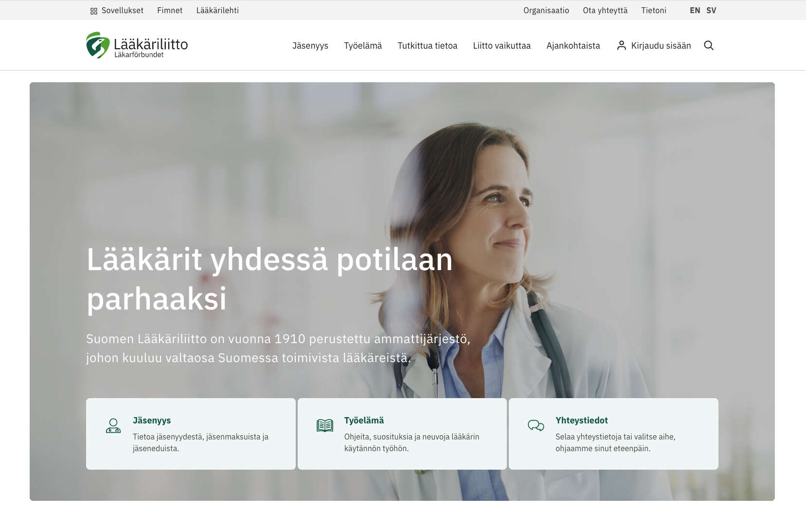Lääkäriliiton pääsivusto laakariliitto.fi on uudistettu.