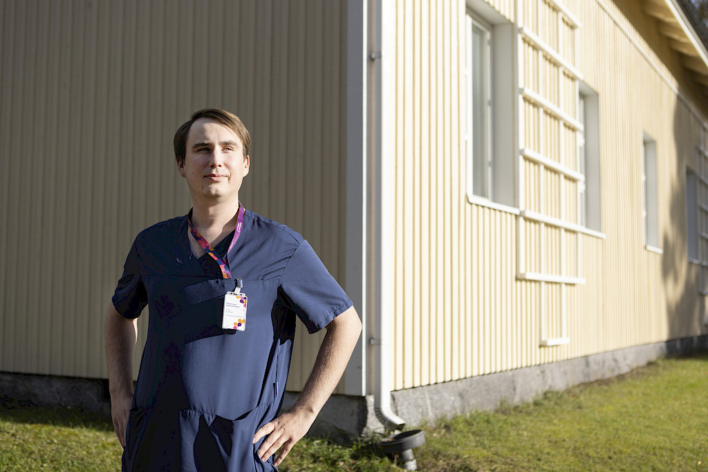 Juuso Koskinen työskentelee terveyskeskuslääkärinä Urjalan terveysasemalla, jota uhkaa sulkeminen Pirkanmaan hyvinvointialueen palveluverkkouudistuksessa.