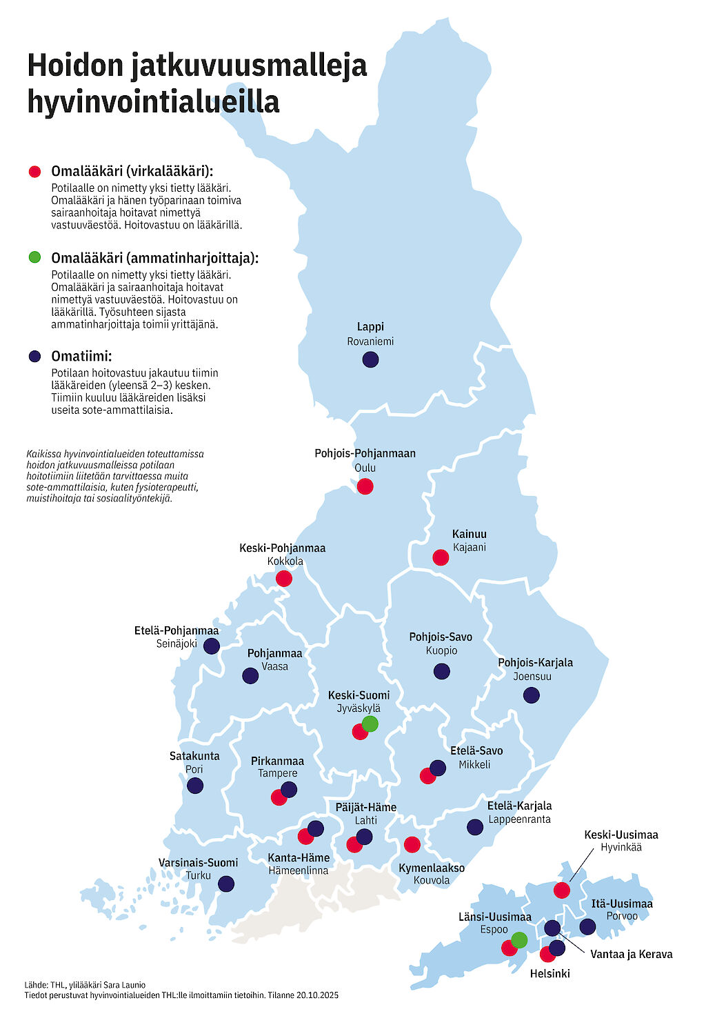 Launio kuuluu omalääkärimallin kansalliseen kehittäjäryhmään, ja hän kerää tietoa mallien tilannekuvasta hyvinvointialueilla.