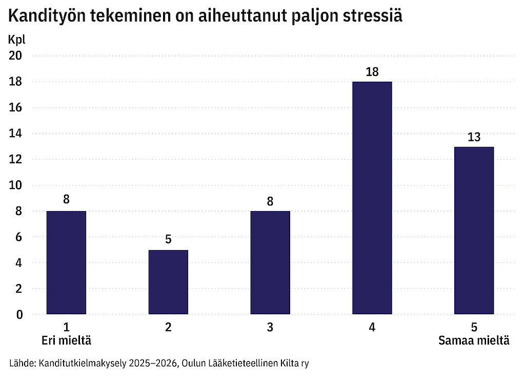 Monet ensimmäisen vuoden lääketieteen opiskelijat kokevat kanditutkielman teon fuksivuonna kuormittavaksi Oulun yliopistossa. Tämä selviää opiskelijoiden ainejärjestön kyselystä.