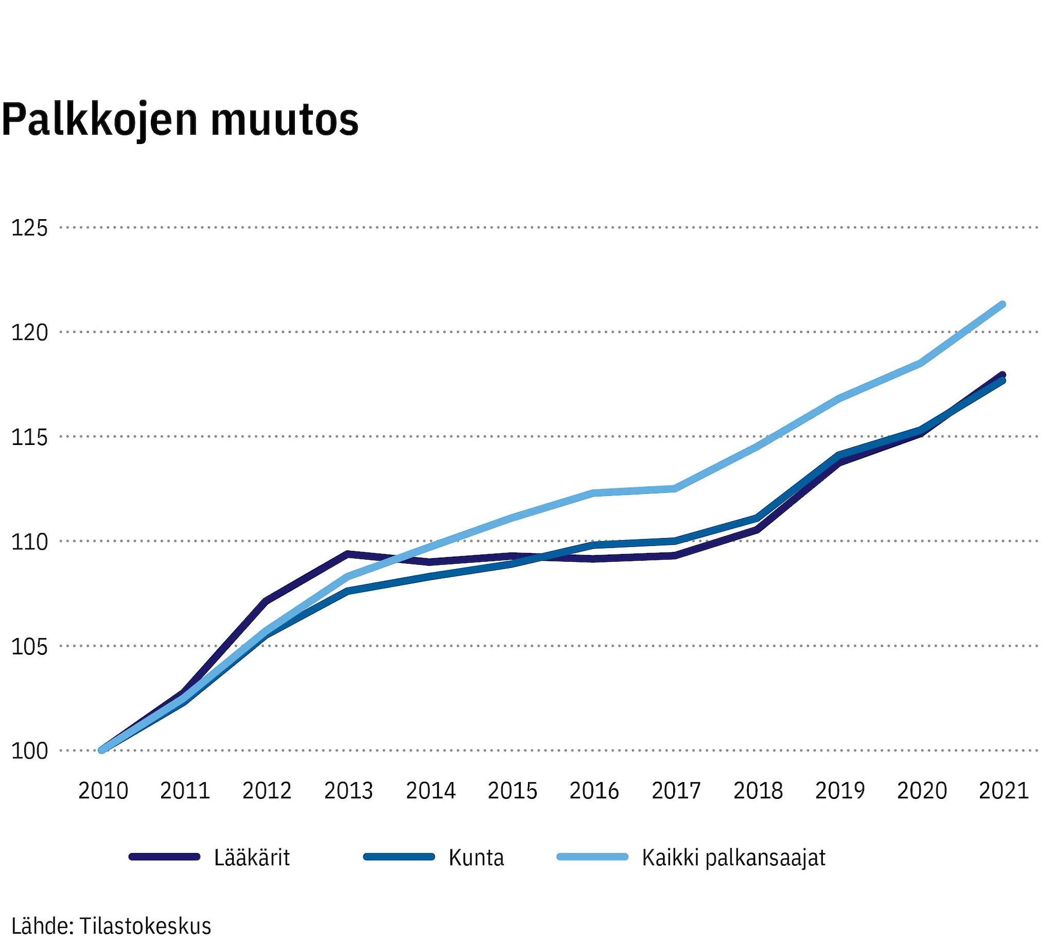 Tilastojen perusteella tulokset ovat jääneet laihoiksi. Lääkäreiden palkat ovat vuodesta 2010 nousseet hitaammin kuin palkansaajilla keskimäärin.
