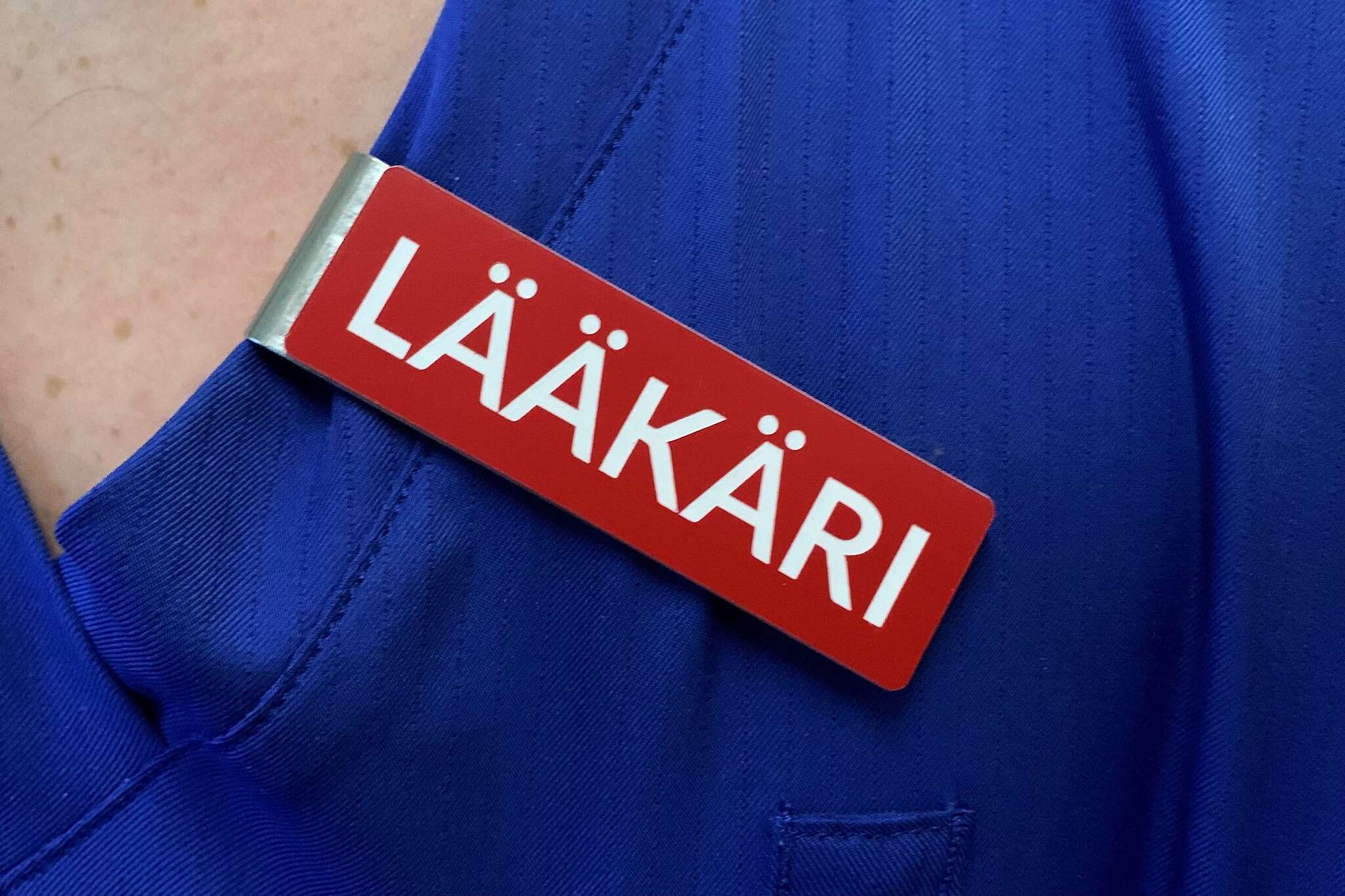 Tampereen yliopistollisessa sairaalassa lääkärin tunnistaa nykyisin usein rintapielessä olevasta punaisesta kyltistä, jossa lukee näkyvästi ”lääkäri”.
