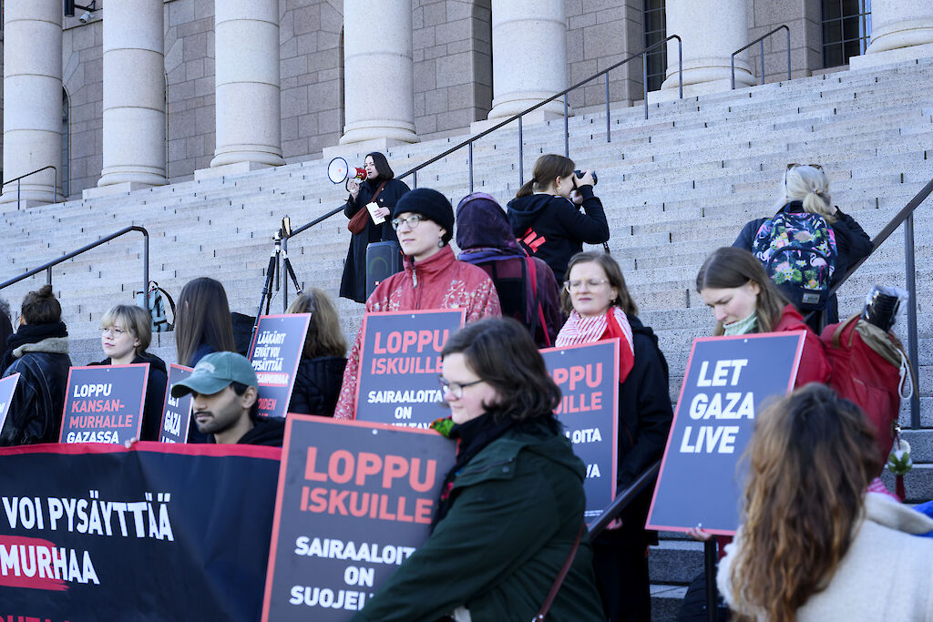 Lääkärijärjestöjen mielenosoitus vaati valtiovaltaa puuttumaan Gazan tilanteeseen.